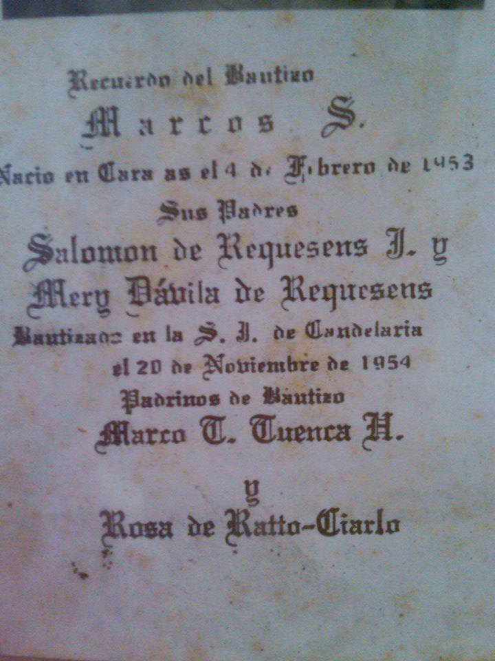 Salomon de Requesens Inglés n. 03.06.1903 a les 2 de la tarda Arenys de Mar (Catalunya) m. 22.08.1986 Caracas (Veneçuela)